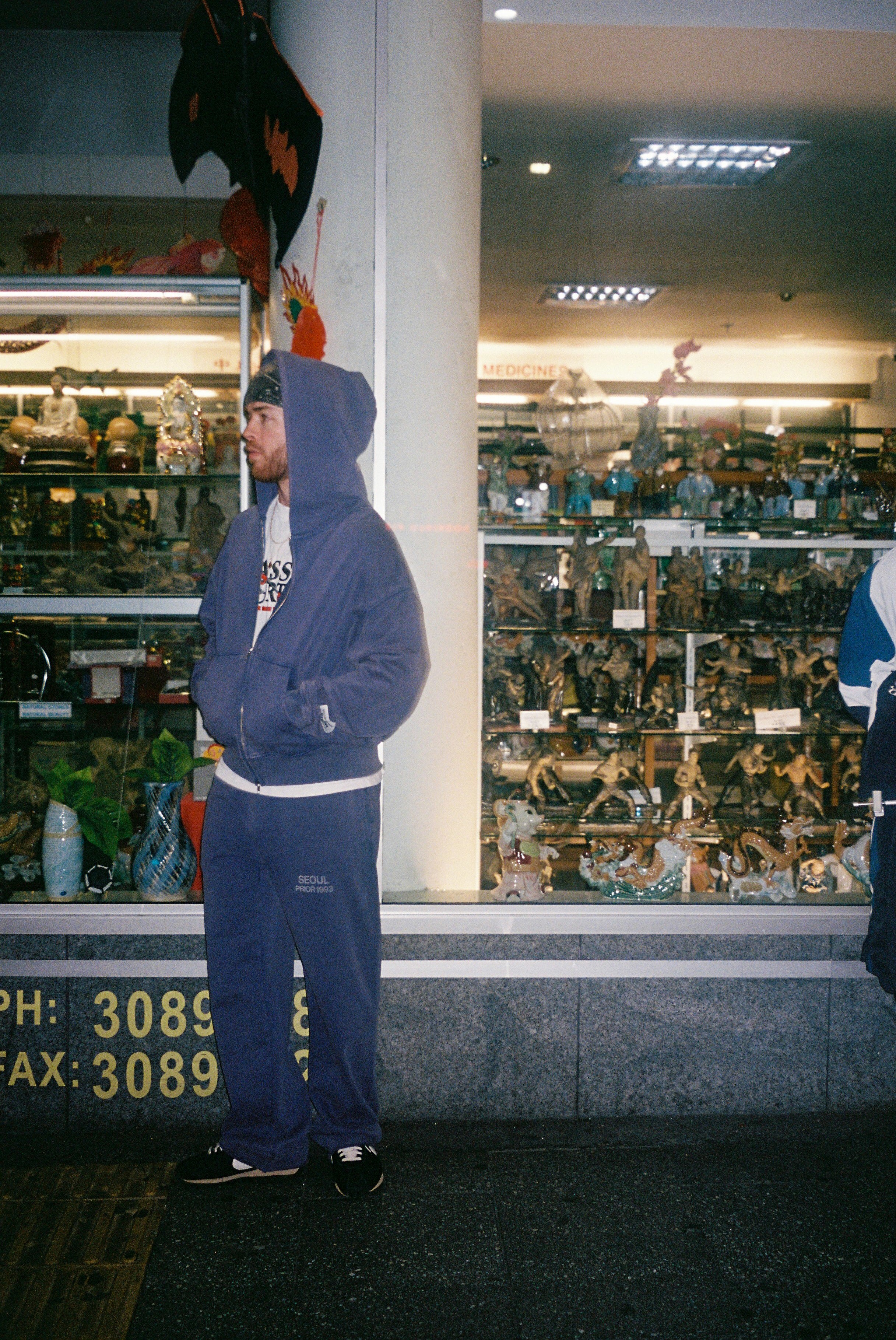 Prior Seoul Collection Double Zip-Up Hoodie Washed Navy -