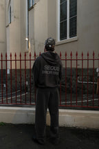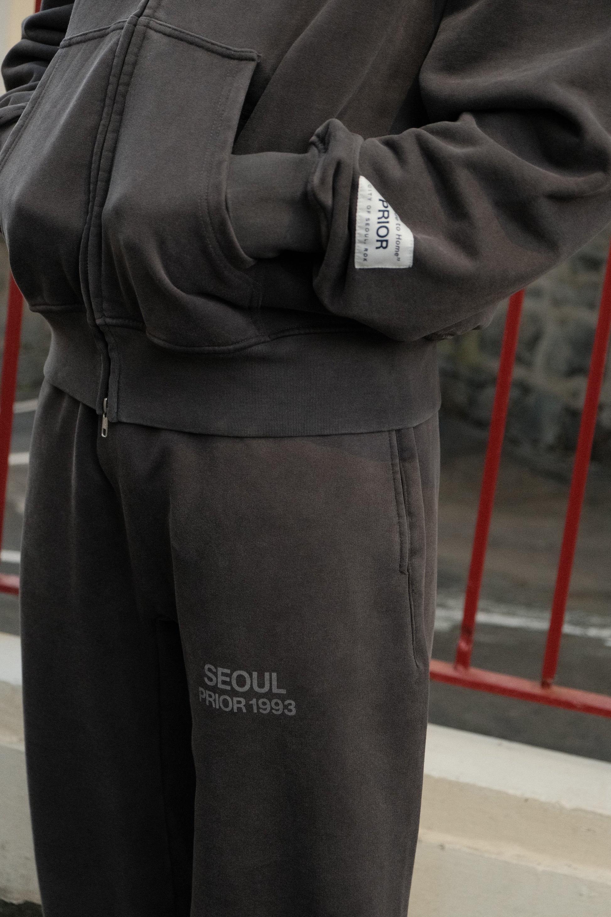 A relaxed silhouette designed for comfort and versatility. Made from the same 440GSM cotton, these pants are washed for a worn-in vintage feel. Featuring a raw hem that can be cut to your preferred length, a drawstring waist for everyday comfort, and a subtle distressed “Seoul Prior 1993” logo detail.