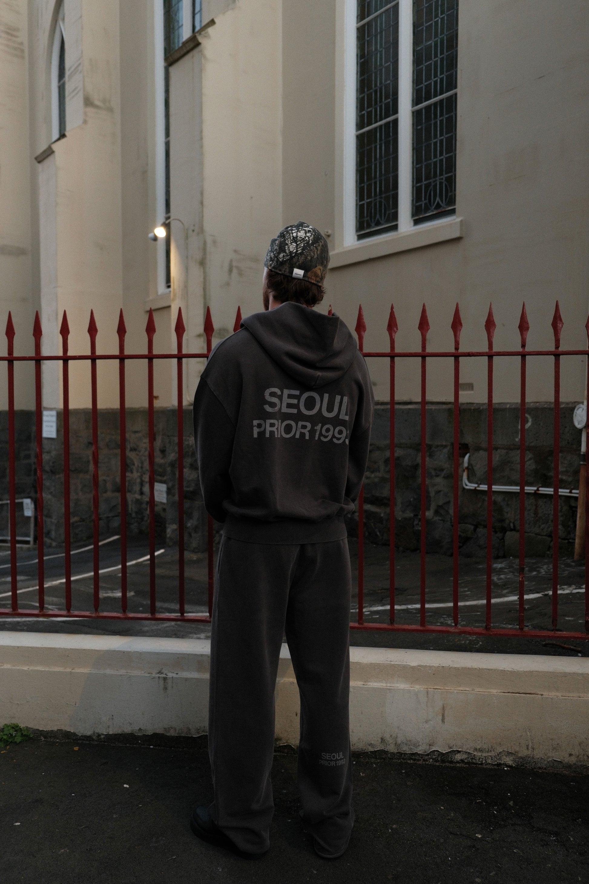 - Distressed “Seoul Prior 1993” logo print