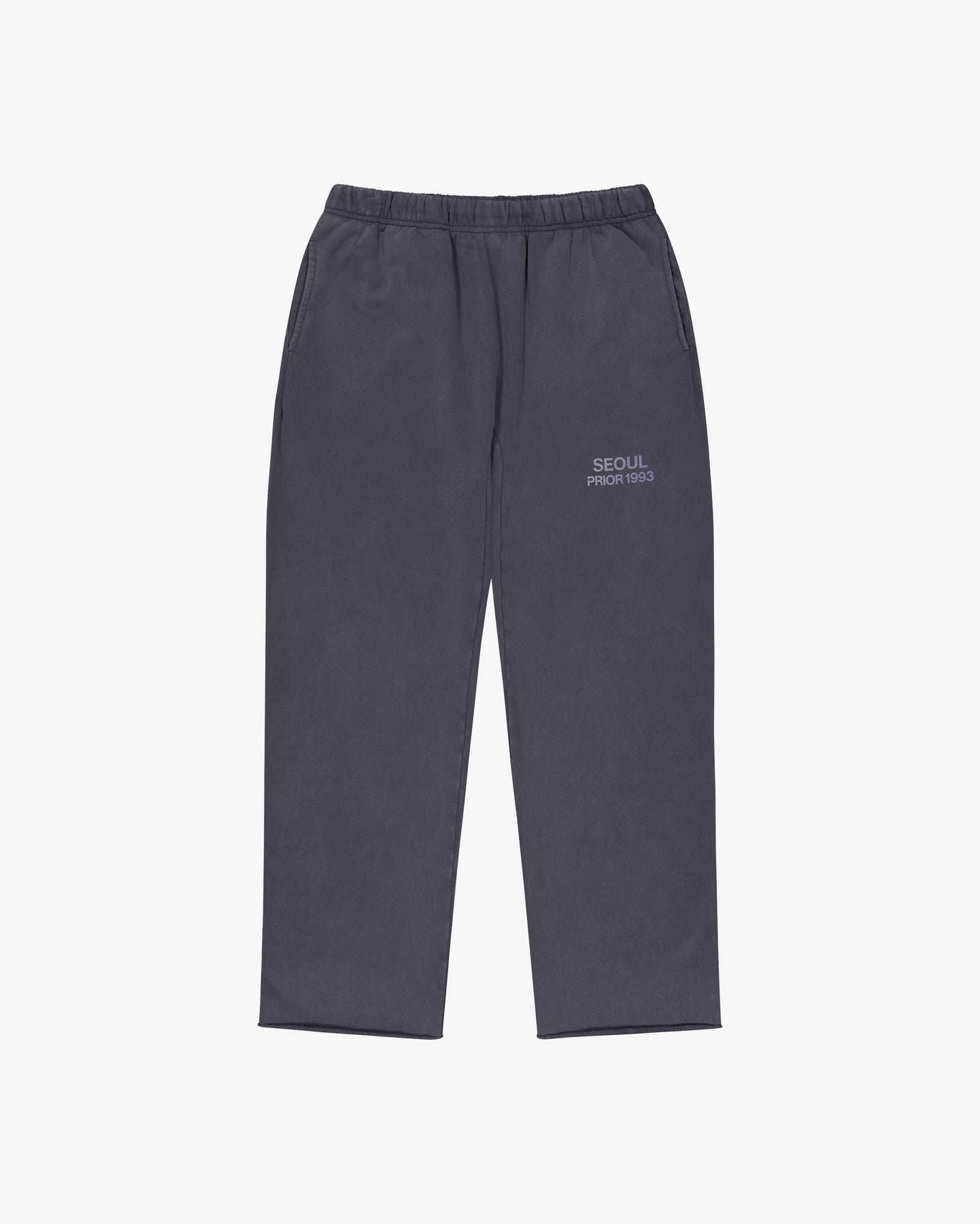 A relaxed silhouette designed for comfort and versatility. Made from the same 440GSM cotton, these pants are washed for a worn-in vintage feel. Featuring a raw hem that can be cut to your preferred length, a drawstring waist for everyday comfort, and a subtle distressed “Seoul Prior 1993” logo detail.