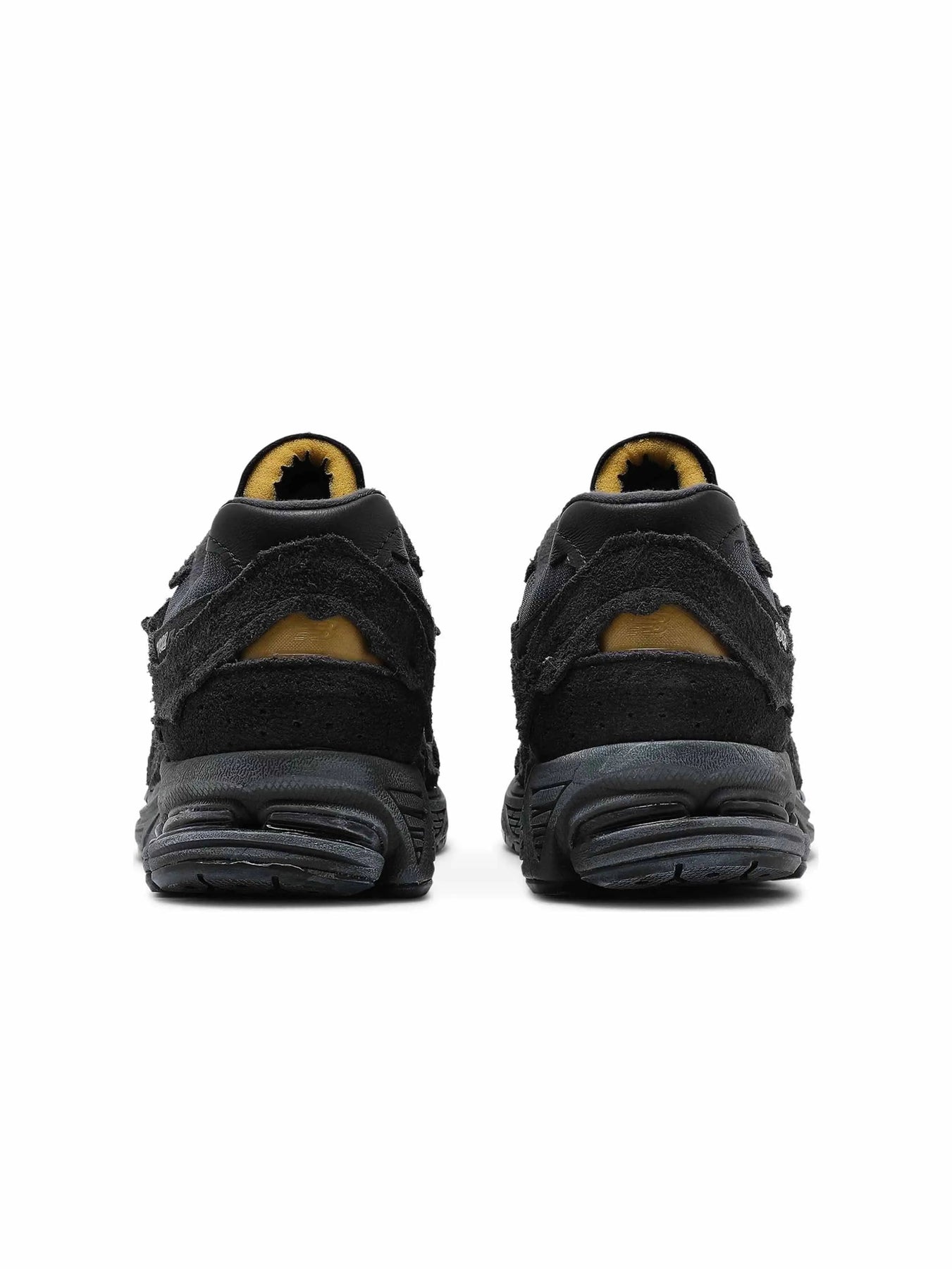 The New Balance 2002R Protection Pack Phantom features a charcoal mesh upper with monotone jagged suede overlays and unfinished edges. From there, a black Nrgy midsole and matching outsole add the finishing touches.